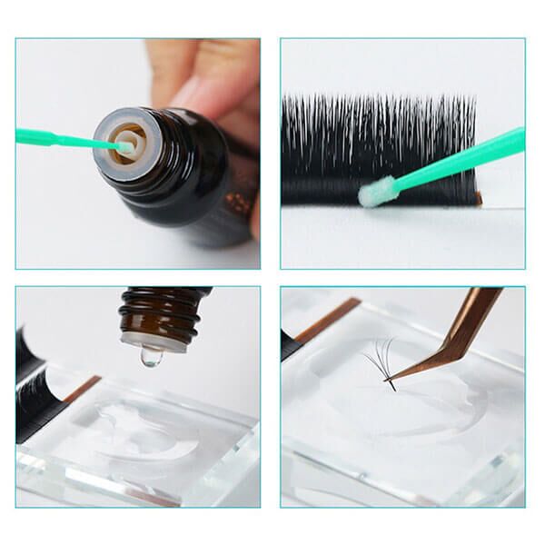 - Dip a small amount of lash primer on disposable micro-applicator brushes for eyelash extensions.