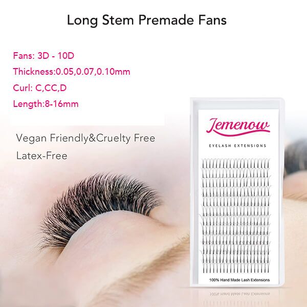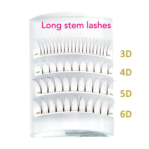 Long stem premade fans have a long base(square). They can create a dramatic and dense black eyeliner effect.